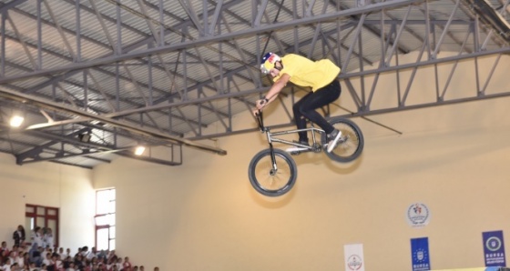 Bursa’da bisikletlerle adeta uçarak gösteri yapan sporcular nefes kesti.