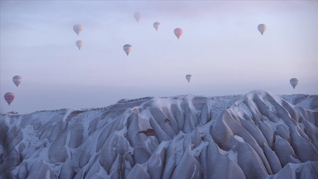 Hafta sonu başlayan kar yağışının etkisini yitirmesi üzerine sabah saatlerinde Nevşehir'in Göreme beldesinde ekiplerce hazırlanan balonlar, turistlerin sepetlere alınmasının ardından peş peşe gökyüzüne yükseldi.