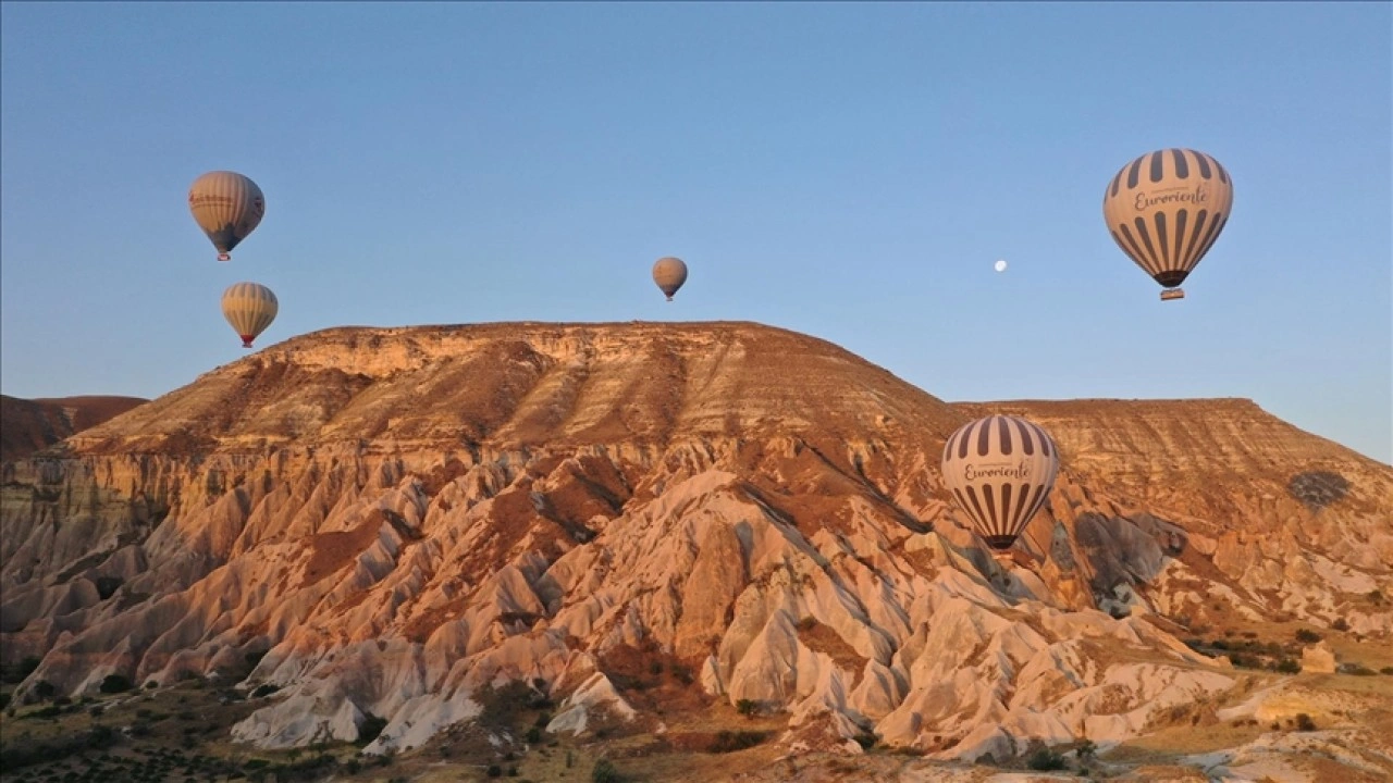 Kapadokya'daki doğal, kültürel ve tarihi zenginliklerle bezeli merkezleri ziyaret eden turistler, bölgenin simgelerinden olan sıcak hava balon turuna katılarak manzarayı gökyüzünden de izleme imkanı buldu.