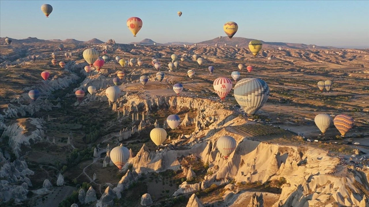 UNESCO Dünya Mirası Listesi'ndeki Kapadokya'da, milyonlarca yıl önce oluşan jeolojik şekilleri kuşbakışı izlemek isteyen turistler sıcak hava balon turuna ilgi gösterdi.