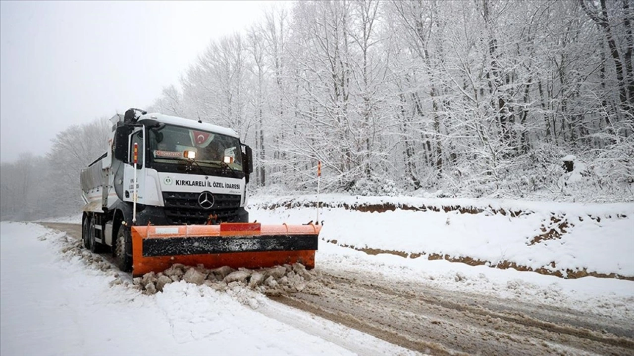 Kırklareli'nin yüksek kesimlerinde aralıklarla etkili olan kar yağışı nedeniyle zaman zaman köy yolları ulaşıma kapanıyor.
