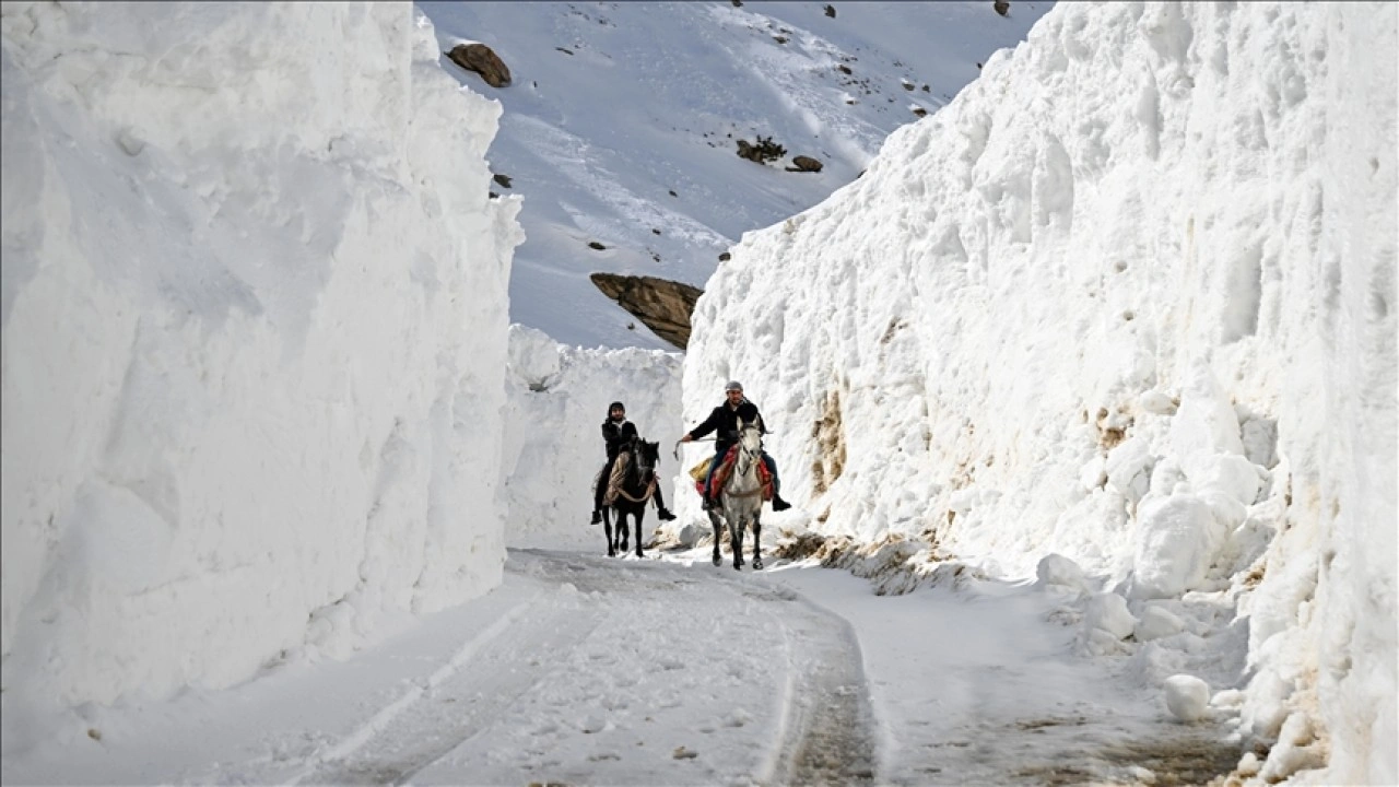 "Kar koridoru"ndan geçerek ilçeye ulaşıyorlarİlçeye 98 kilometre mesafedeki İran sınırında bulunan ve etrafı Yüksek Dağ larla çevrili mahallede son yılların en çetin kış ı yaş anıyor.