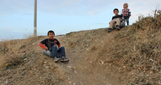 Yaşları 8 ile 10 arasında değişen Ali, Ayhan Balık ve Erhan Aslan, karsız eğlencenin keyfini saatlerce çıkardılar. Tepeden aşağı kayan çocuklar, zaman zaman hafif kazalar da geçirdiler.