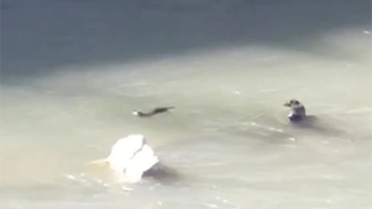 Görüntülerde, su samurlarının yüzerek ilerlemesi ve gözden kaybolması yer alıyor.