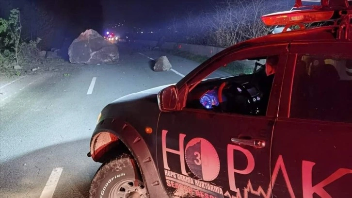 Artvin'in Kemalpaşa ilçesinde Karadeniz Sahil Yolu'na kaya parçalarının düşmesi, ulaşımın aksamasına neden oldu