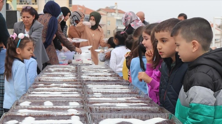 Karaman'da eğitim öğretime başlayan depremzede öğrencilerle bir araya gelerek tanışmak isteyen Gevher Hatun Anaokulu öğretmenleri, veliler ve öğrenciler evlerinde pastalar hazırladı.