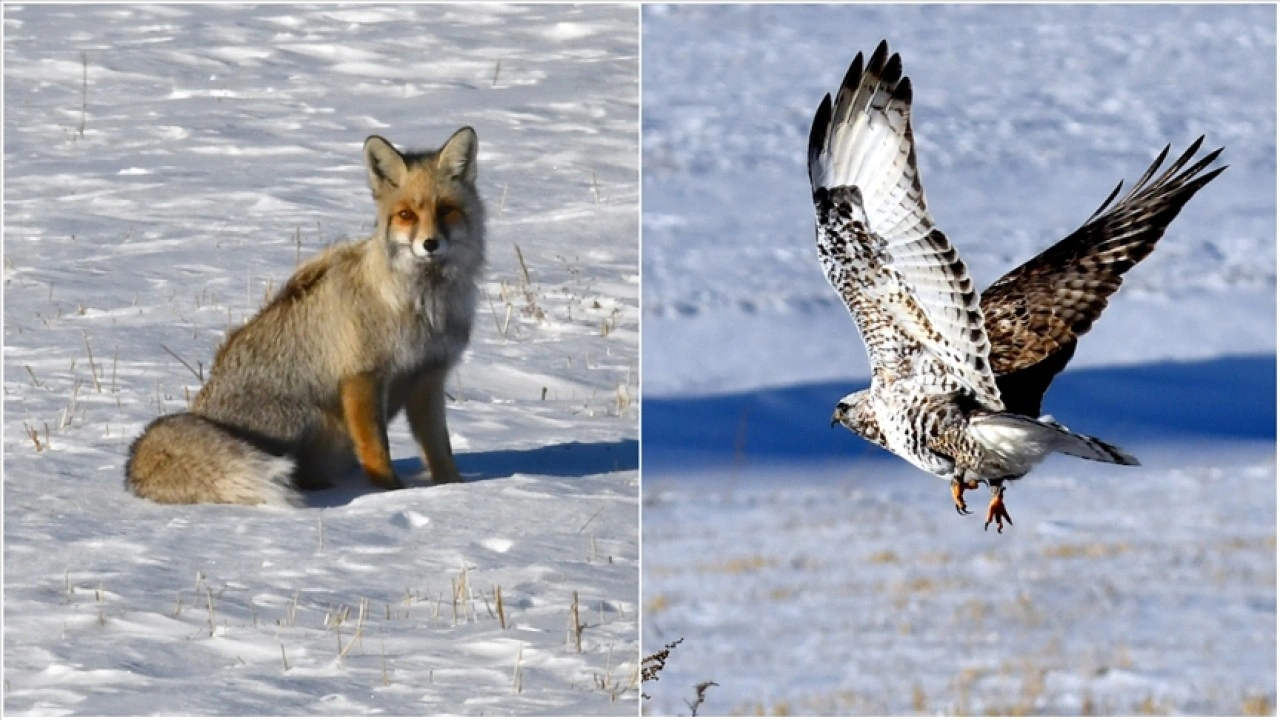 İlçeye 10 kilometre uzaklıktaki Asboğa köyü bölgesindeki karlı arazide yiyecek arayışına çıkan kızıl tilki ve kış aylarında nadir görülen paçalı şahin görüntülendi.