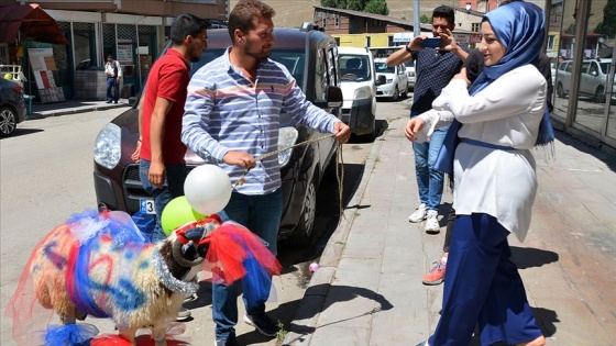 Karslı damat Emre Alp ve ailesi de geleneği yaşatmak için satın aldıkları koçu süsledikten sonra Sarıkamış ilçesindeki gelin evine teslim etti.