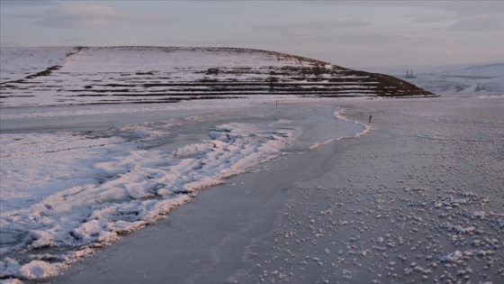 Dondurucu soğukların yaşamı olumsuz etkilediği Doğu Anadolu Bölgesi'nde dere, göl ve barajlar dondu.