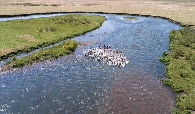 Yöre halkının tarlasını suladığı, balık tuttuğu, kazlarını yüzdürdüğü akarsuyun çevresindeki otlaklarda ise besiciler hayvanlarını otlatıyor.