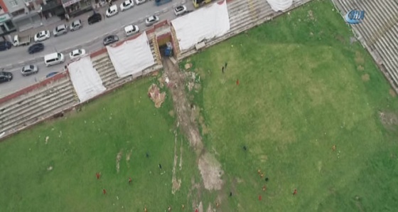Kartal Belediyesi’nin depreme dayanıklı olmadığı ve yıkılması gerektiği kararı ile stadyumun bir kısmı yıkılırken dükkanlarını olduğu tarafa yıkım yapılmadığı görüldü.