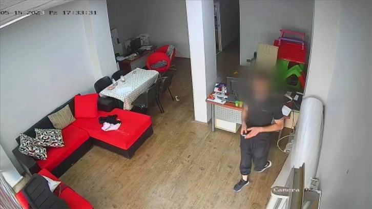 İş yerinin güvenlik kamerasınca kaydedilen görüntülerde, içeri girdikten sonra etrafına bakınan şüphelinin masanın üzerindeki cep telefonunu alarak ofisten ayrılma anları yer alıyor.