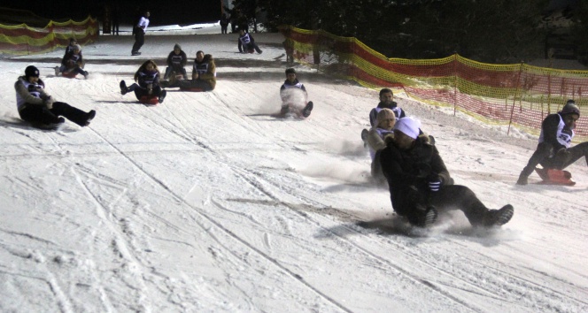 Türkiye'nin önemli kayak merkezleri arasında yer alan Erzurum Palandöken'de düzenlenen kızak yarışında, 150 üniversite öğrencisi dereceye girebilmek için mücadele etti.