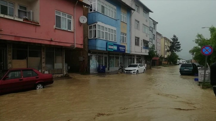Azdavay ilçesinde de sağanak nedeniyle bazı ev ve dükkanları su bastı.