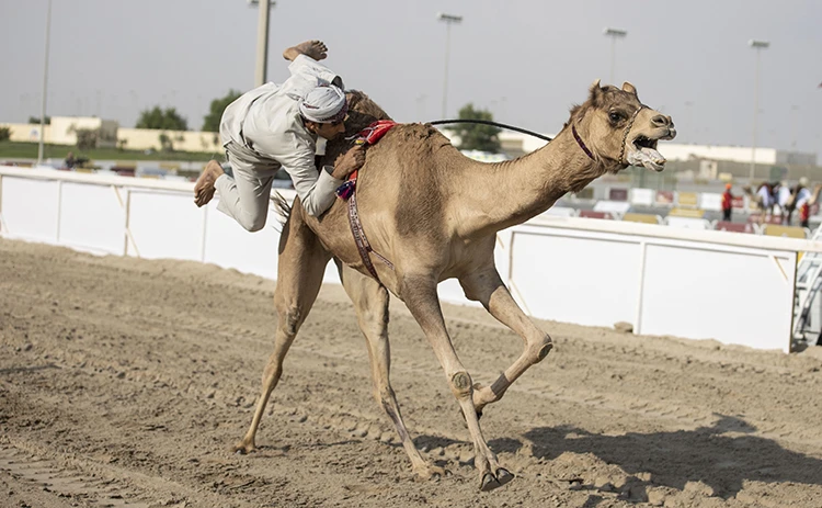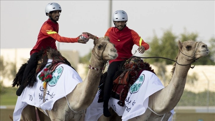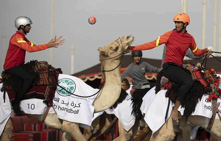 Katar'da "2022 Dünya Kupası ve Deve" etkinlikleri çerçevesinde dünyada ilk kez develer üzerinde iki hentbol maçı oynandı
