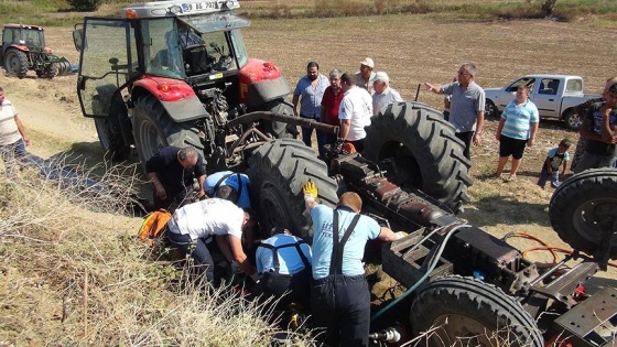 Devrilen traktörü çevreden geçenlerin fark etmesi üzerine, olay yerine itfaiye ve sağlık ekipleri çağrıldı.