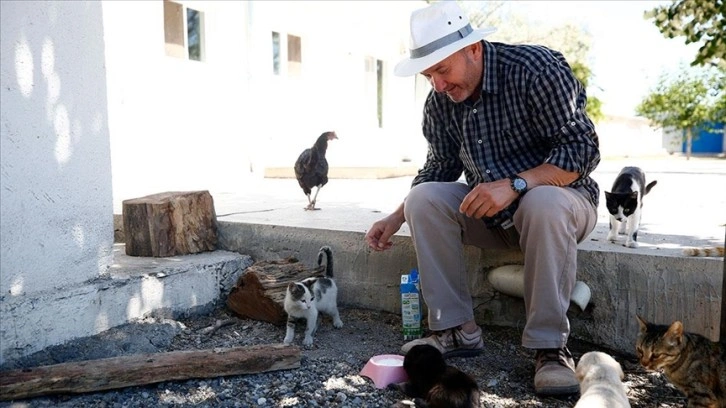 "Kediler tarlaya gidip fare de avlıyorlar, biz de beslemeye çalışıyoruz. Buradaki ekip üyeleri bu işin içinde, sorumluluk sahibi. Günde iki nöbetçimiz var, genel işlerle birlikte hayvanların bakımı da var, onların sularını mamalarını veriyorlar. Hiçbir yiyecek çöpe gitmiyor, burada ambalaj atıkları dışında çöpümüz çıkmıyor. Her şey hayvanlar tarafından tüketiliyor. Hiçbir yeşilliği, yenilebilecek malzemeyi atmamaya çalışıyoruz. Tavuklarımız, kazlarımız var, onlar da bize yardımcı oluyorlar, börtü böceği temizliyorlar. Dolayısıyla bunlar bize rahatlatıcı bir atmosfer sunuyor. Kafamızı sürekli işle doldurmak ve onu taşımak zor. Buradaki hayvanlar bize dostluk yapıyor. Bazı arkadaşlarımız odalarında, bazıları sürekli mama alıp besliyor."