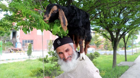 "Keçilerin yapısında oynamak, zıplamak var. Kaya üzerine çıkıp oynamayı severler. Burada kaya olmadığı için beni de kaya gibi görüyor. Keçiler daha çok yaprak yer. Ot ve yonca onlar için sonra gelir. Ulaşamadıkları yerlere ne bulursa üzerine çıkarak ulaşmak isterler. Bir gün ağaç dalını aşağıya çektim yapraklarını yesinler diye. Yedikçe omzuma çıkmaya başladılar. Daha sonra ağaca çıksınlar diye omzuma aldım onlar da çıkmaya devam ettiler. Bazen sırtıma çıkıp oynuyorlar, bazen de yüksek dallara çıkmak için omzumu kullanıyorlar."