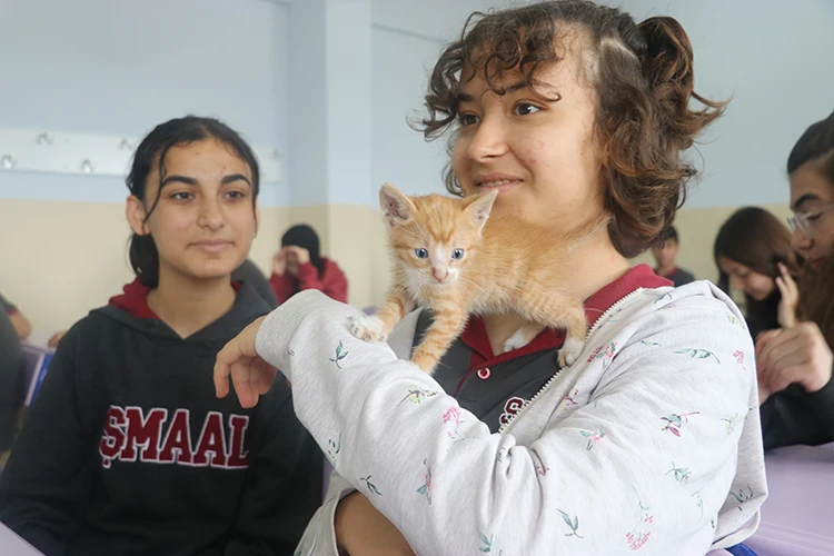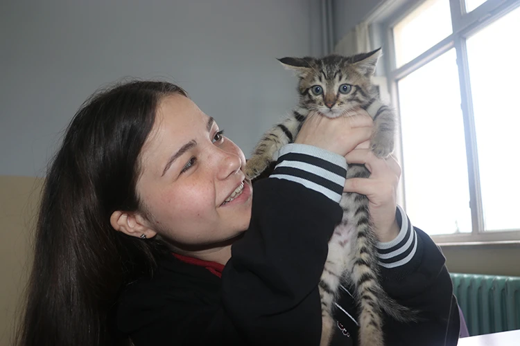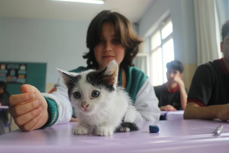 Okul yöneticileri, kedi ve yavrularının aşılarını yaptırıp karnesini çıkartırken, öğrenciler de kedilerle daha fazla vakit geçirebilmek için okula erken geliyor.