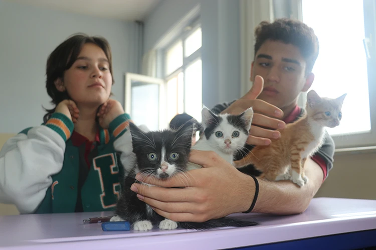 "Pamuk", "Öksüz", "Leydi", "Manga", "Sarıkız", "Zeytin" ve "Kıvırcık" ismini verdikleri kedi yavruları ile annelerine sevgiyle bakan öğrenci ve öğretmenler, bina içinde kediler için yuva yaptı.
