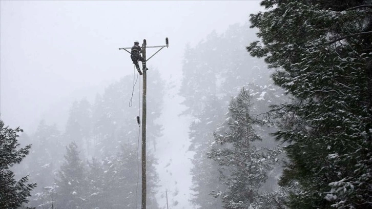 Enerjinin kesintiye uğramaması için dondurucu soğukta direklere tırmanarak onarım yapan ekipler, şebekeler için yeni direkler de dikiyor.