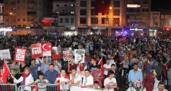 Kilis Valiliği ve Belediyesinin çağrısı üzerine ellerinde Türk bayraklarıyla Cumhuriyet Meydanı'nda toplanan binlerce vatandaş, "Recep Tayyip Erdoğan", "Biz buradayız hainler nerede", "İdam istiyoruz" sloganları atarak, tekbir getirdi. Kur’an-ı Kerim okunmasıyla devam eden programda meydanda toplanan vatandaşlara, Kilis Belediyesi, İl Afet ve Acil Durum Müdürlüğü, Türk Kızılayı ve İl Özel İdaresi ile iş adamı Mehmet Aykanat tarafından ikramlarda bulunuldu.