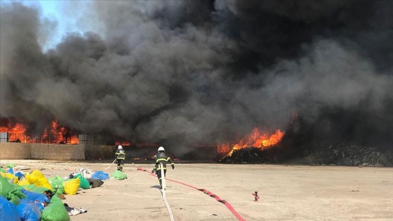 Yangında, açık alandaki depoda bulunan geri dönüşüm malzemeleri kullanılamaz hale geldi.