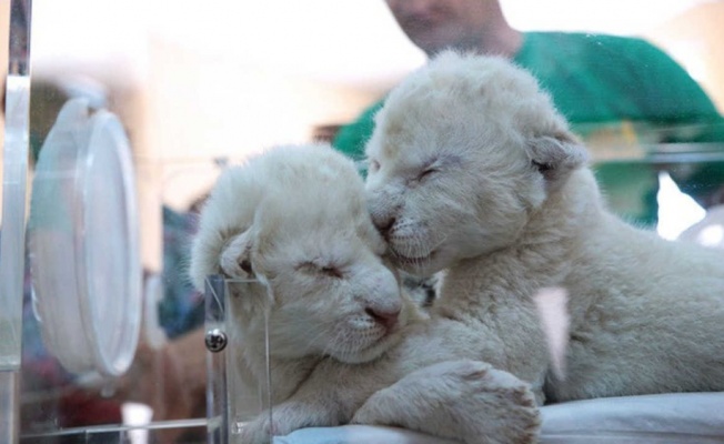 Kırım’da bulunan Safari Park’ta dünyada çok nadir görülen 2 adet beyaz aslan dünyaya geldi.