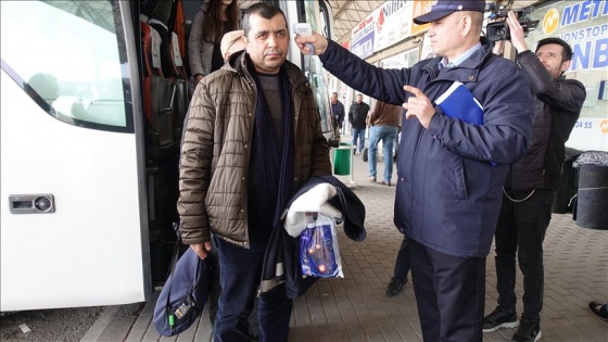 Zabıta personeli daha sonra otobüsten inen vatandaşların sırayla ateşlerini ölçtü.