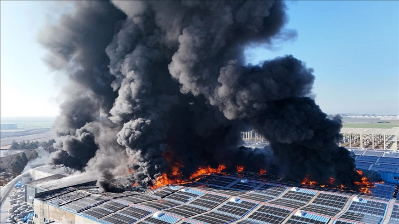 Büyükkarıştıran beldesindeki fabrikada henüz bilinmeyen nedenle yangın çıktı.