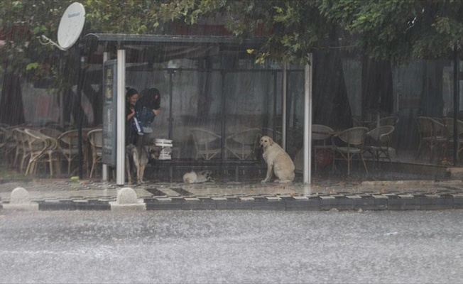 KIRKLARELİ (AA) - Sabah saatlerinde etkili olan ve yaklaşık 1 saat süren yağış nedeniyle bazı vatandaşlar iş yeri ve otobüs duraklarına sığınarak korunmaya çalıştı.