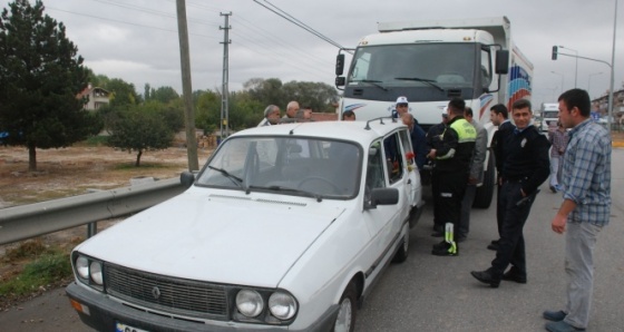 Edinilen bilgiye göre; Tokat-Turhal karayolu çevre yolu kavşağında kırmızı ışıkta duran Salih Oran idaresindeki 60 VB 391 plakalı otomobile Taci D.'nin kullandığı 60 SC 799 plakalı kamyon arkadan çarptı. Çarpmanın etkisi ile yaklaşık 10 metre sürüklenen otomobilde yolcu olarak bulunan Selahattin Subaşı (70) hafif şekilde yaralandı. Yaralı, ambulans ile Tokat Devlet Hastanesine kaldırıldı.