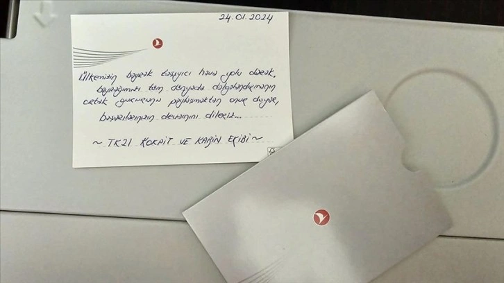 Başarısından dolayı Muhammed'i alkışlayan kabin ekibi de genç sporcuya tebrik mektubu verdi.