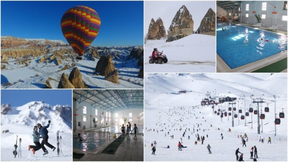 Yerli ve yabancı turistlerin gözdesi Kapadokya bölgesi, yarıyıl tatilinde balon turu, kayak ve kaplıca keyfini aynı gün yaşamak isteyenleri bekliyor.