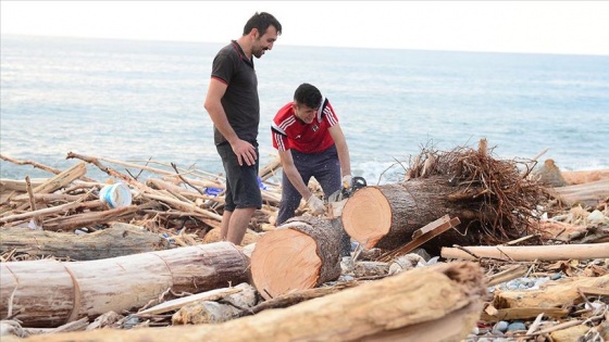 Sel sonrası sahile çok sayıda odun biriktiğini anlatan Erdoğan, "Biz de odunları alıyoruz, bir yandan sahilde temizlik oluyor, bir yandan da kendi ihtiyacımızı karşılıyoruz. Biz almazsak bu odunlar çöp olacak, belediye gelecek, alacak bir yere atacak. En azından kendi ihtiyacımızı karşılıyoruz." dedi.