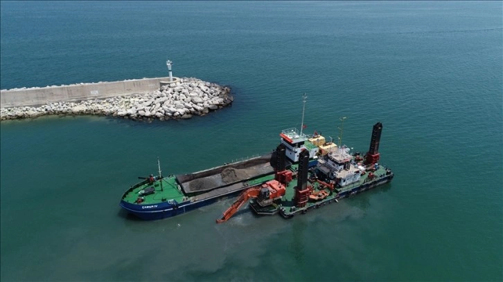 Yaklaşık bir ay önce başlatılan çalışmalar kapsamında kumlar liman dışına çıkarılıp İl Özel İdaresi ekiplerince bölgeden götürülüyor.