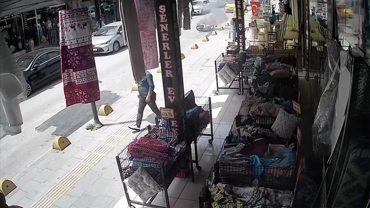 Öte yandan motosikletin alev alma anı, güvenlik kamerasınca kaydedildi.