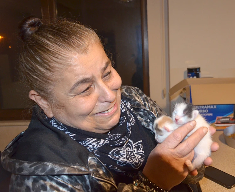 Bitkin halde bulunan kedi yavrularını, KOCAELİDER41 Yönetim Kurulu Üyesi Kemal Denizci'nin evinde baktığı ve yeni doğum yapan anne kedi besliyor.