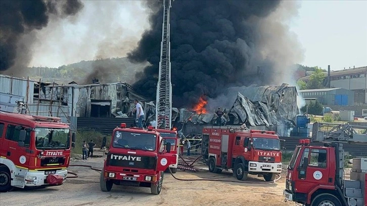 Kocaeli Büyükşehir Belediyesi İtfaiyesi ekipleri yangını kontrol altına almaya çalışıyor.