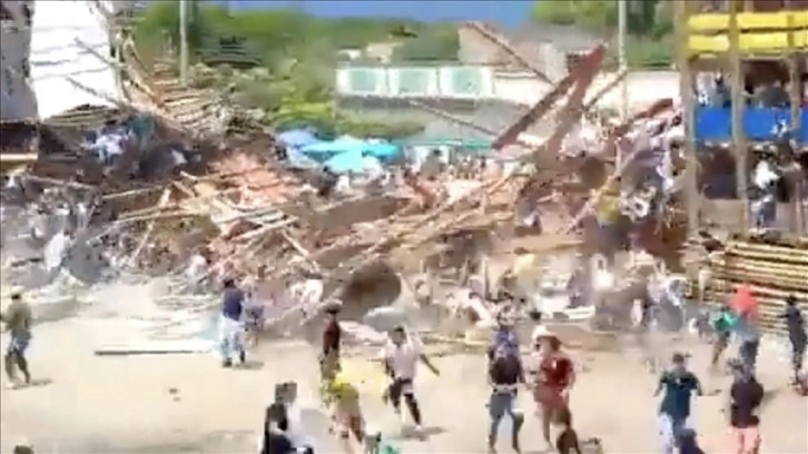 Tolima yönetim bölgesine bağlı Espinal şehrinde, ülkede geleneksel olarak yapılan boğa güreşi festivalinde izleyicilerin bulunduğu tribünün bir kısmı çöktü.