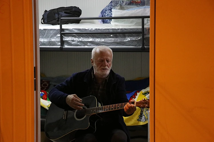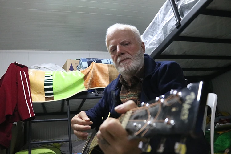 AFAD koordinasyonunda oluşturulan Topal Dursun Konteyner Kenti'nde yaşamını sürdüren İstanbuloğlu, burada da bir arkadaşının hediye ettiği gitar sayesinde hayatını adadığı müzikten yine kopmadı.