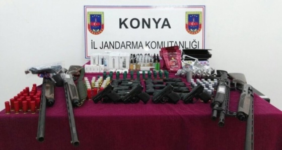 Edinilen bilgiye göre, Beyşehir ilçesine bağlı Üzümlü Mahallesi’nde bazı şahıs ve şahısların kuru sıkıdan bozma tabanca, kalem ve anahtarlık tabanca ile kısa namlulu av tüfeği üretimi yaparak bunların başta Beyşehir ve Seydişehir olmak üzere yurt genelinde satışa sunulduğu bilgisi üzerine harekete geçen Konya İl Jandarma Komutanlığı ekipleri çalışma başlattı. 4 ay süren teknik ve fiziki takibin ardından operasyon için düğmeye basan Konya İl Jandarma Komutanlığı ekipleri, Beyşehir ve Seydişehir İlçe Jandarma Komutanlığı ekiplerinin de destek verdiği İzmir’de 1, Beyşehir’de 6, Seydişehir ilçesinde 2 olmak üzere toplam 9 farklı adrese şafak vakti eş zamanlı baskın düzenledi. Şüpheli şahıslara ait ev, iş yeri ve eklentileri ile araçlarında yapılan aramalarda 185 suikast tipi tek atımlık kalem tabanca, 68’i 7,65 mm, 18’i 9 mm olmak üzere toplam 86 kuru sıkıdan bozma tabanca, 535 kuru sıkı tabanca, 60 adet 7,65 mm çapında tabanca fişeği, 987 adet yasa dışı yiv ve set açılmaya uygun kurusıkı tabanca namlusu, 39 adet toplu av tüfeği kasası, 4 adet yasadışı üretim av tüfeği, 344 adet av fişeği, 286 adet namlulu ve el kabzalı tabanca alt takımı, 2 adet yiv ve set açmaya yarayan aparat, 3 adet yiv ve açılmış namlu ile tabanca yapımında kullanılan çok sayıda tabanca parçası ile tabanca yapımında kullanılan matkap, boya makinesi ve el aletleri ile 636 cinsel içerikli uyarıcı hap, 69 adet elektronik sigara ısıtıcısı, 275 adet sigara likidi ele geçirildi.