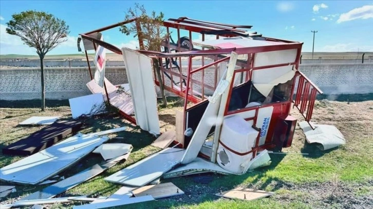 Gökhüyük Mahallesi'nde yaklaşık 60 kişinin kaldığı çadırlardan 5'i şiddetli rüzgardan dağıldı.