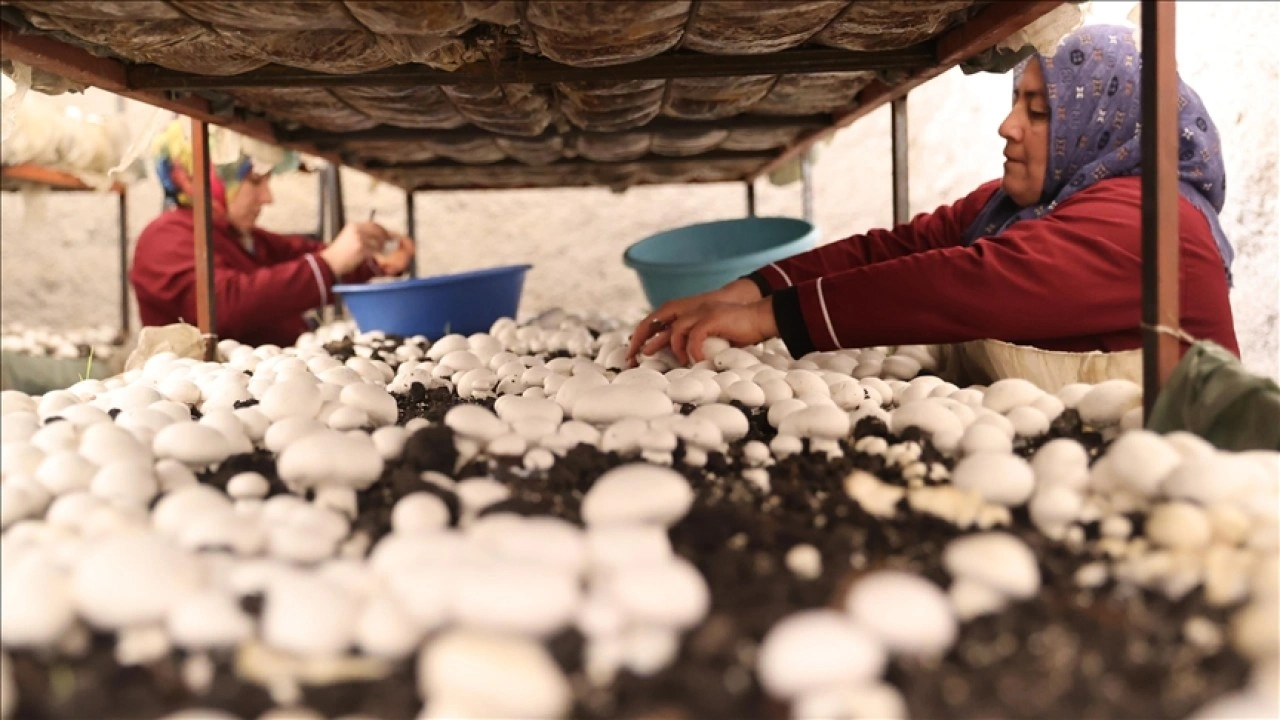 Kadınlar, beldedeki eski han binasının belediye tarafından restore edilmesinin ardından proje kapsamında teslim aldıkları mantar kompostu, raflar, havalandırma ve sulama cihazlarıyla asırlık handaki kaya odalarda kültür mantarı üretimine başladı.