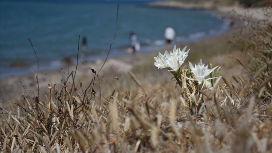 Havaların ısınmasıyla birlikte Bodrum ve Datça kıyılarında açmaya başlayan kum zambağı, ilçede tatilini geçiren yerli ve yabancı turistlerin beğenisini topluyor.
