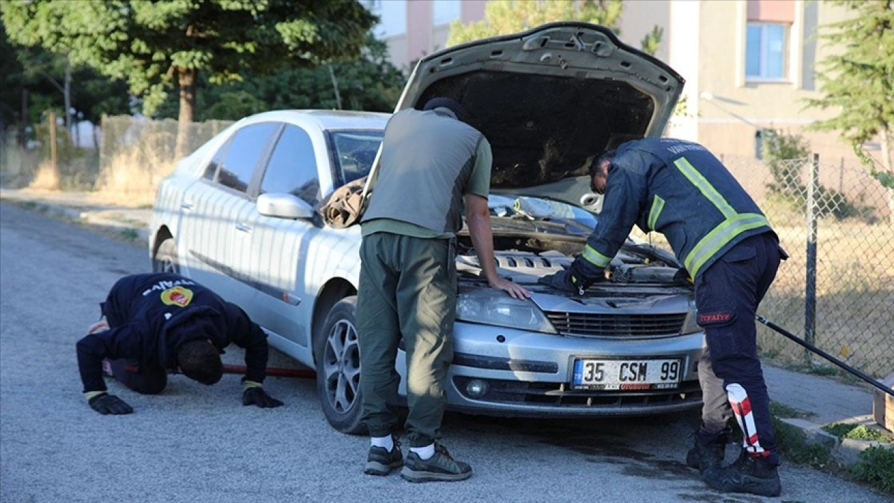 Sabah otomobilini çalıştıran sürücü Deniz Çakır, hayvanın arabanın kaputuna girdiğini fark etti.