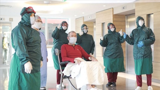 Taburcu edilen kadın, doktor ve hemşirelerin alkışları eşliğinde evine uğurlandı.
