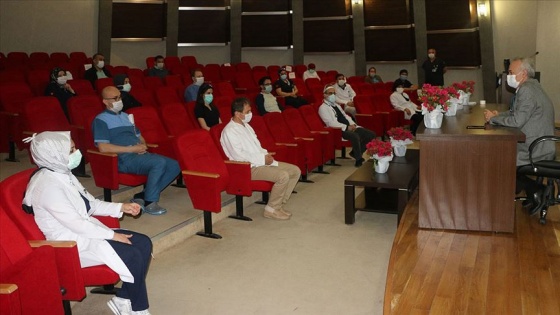 Öğütlü, Sakarya Üniversitesi Eğitim ve Araştırma Hastanesinde koronavirüse yakalanarak hastalığı atlatan ve aralarında hekim, hemşire, ebe, temizlik ve güvenlik görevlilerinin de bulunduğu çalışanlarla bir araya geldi.