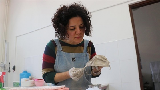 Bu kapsamda porselen maskeler yapmayı düşündüğünü, seramik çamuruna şekil vererek maske şekline getirdiğini dile getiren Gökbel, "Kovid-19 başladığında iyi bir maske bulabilmek çok güçtü.
