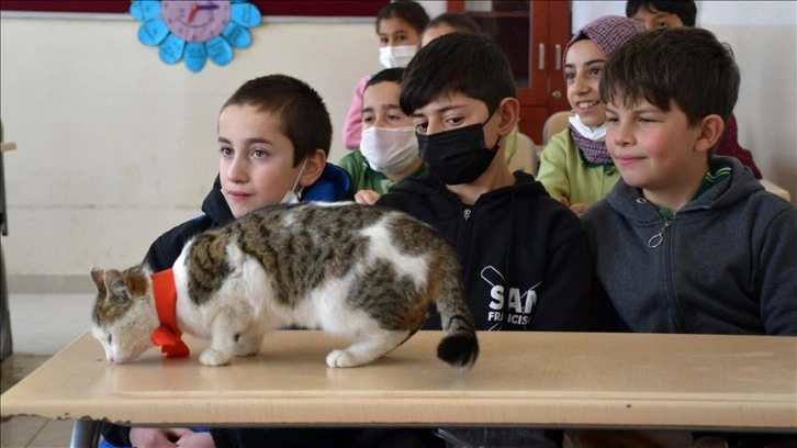 Öğrencilerden Azra Taşgur da "Tonton"un sınıfa girip ders dinlediğini, zaman zaman sıraların üzerinde gezindiğini anlatarak, "Teneffüste de yanımıza geliyor ve onunla oyunlar oynuyoruz, besliyoruz. Biz böyle çok mutluyuz, asla ayrılmak istemiyoruz." dedi.